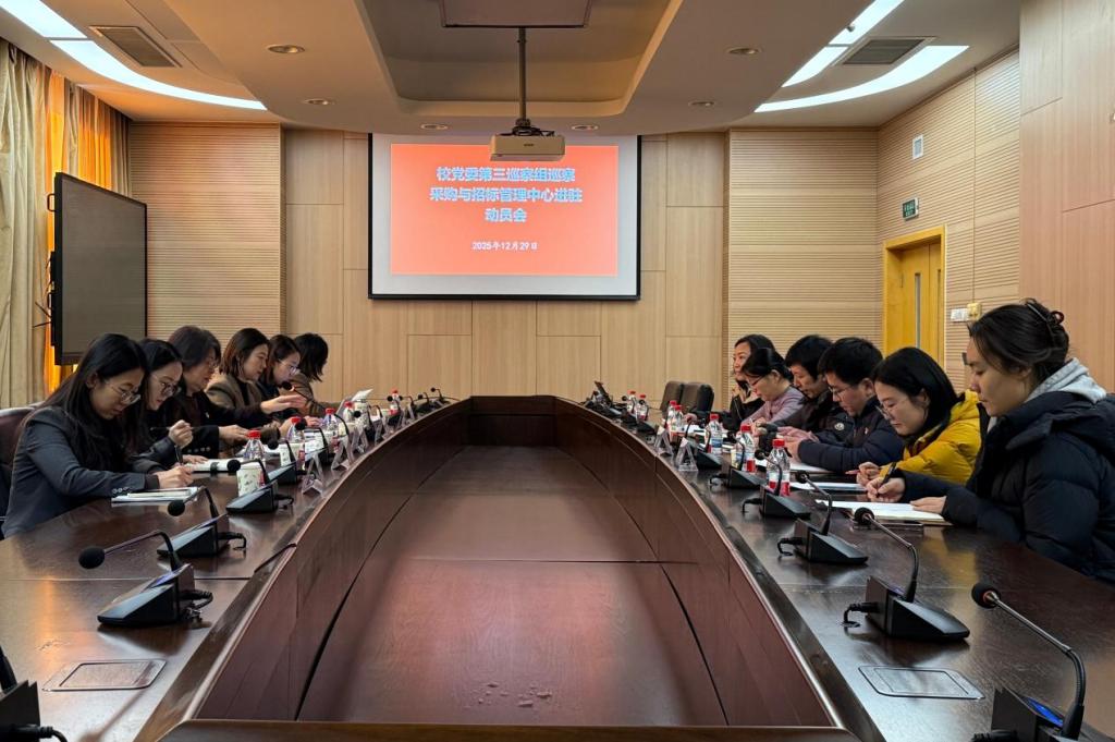 根据校党委工作部署,2025年12月29日上午,第三巡察组巡察采购与招标管理中心工作动员会议在学院南路校区学术会堂603召开。巡察组组长王瑜作动员讲话,采购与招标管理中心主任李健主持会议并作表态发言,巡察组全体成员、巡察工作办公室有关负责同志、采购与招标管理中心全体教职工参加会议。
